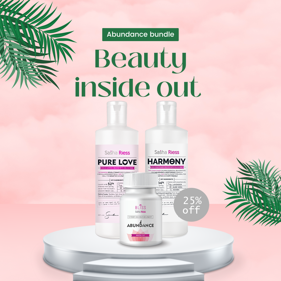 Bundle up the pure love you feel for your pup and give them the healthiest skin, coat, and nails in town. Give your dog the best with the brand-new Sasha Riess Bliss line of nutritional dog supplements. Food supplements designed to create beautifully healthy coats by maintaining a healthy body.